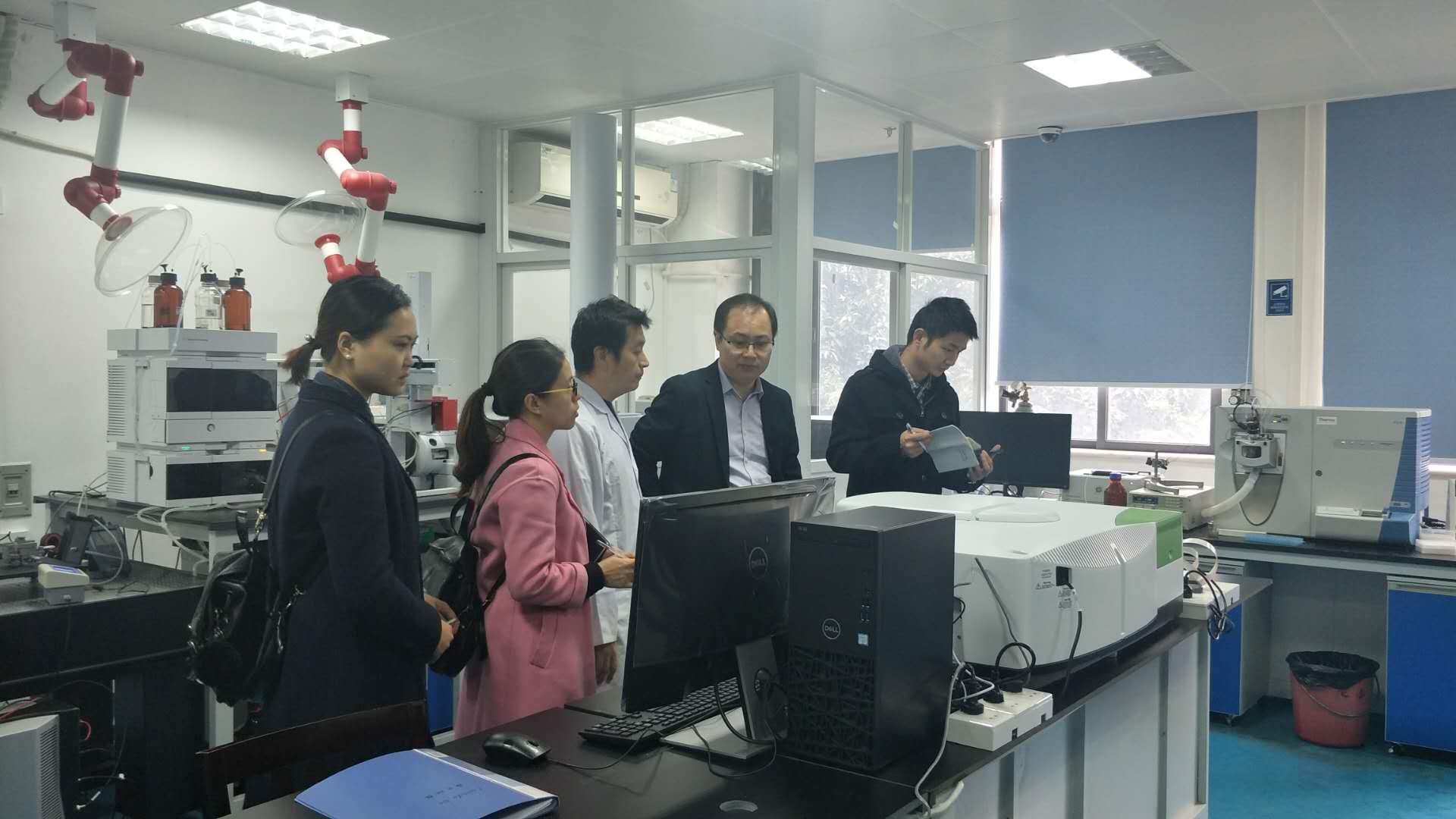 随后,中心副主任李厚金老师等全程陪同来访嘉宾参观了无机、分析、有机、仪器分析实验室和中心实验室,对各教学实验室的建设与运行情况,以及各种大型仪器的应用、维护等逐一进行了介绍,并分享了在实验室建设和管理过程中经验和体会。