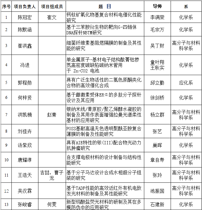 第二十二届(2021学年)创新化学实验与研究基金立项项目