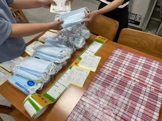 ▲学院为每位新生发放搬迁物资,并温馨提醒打包注意事项