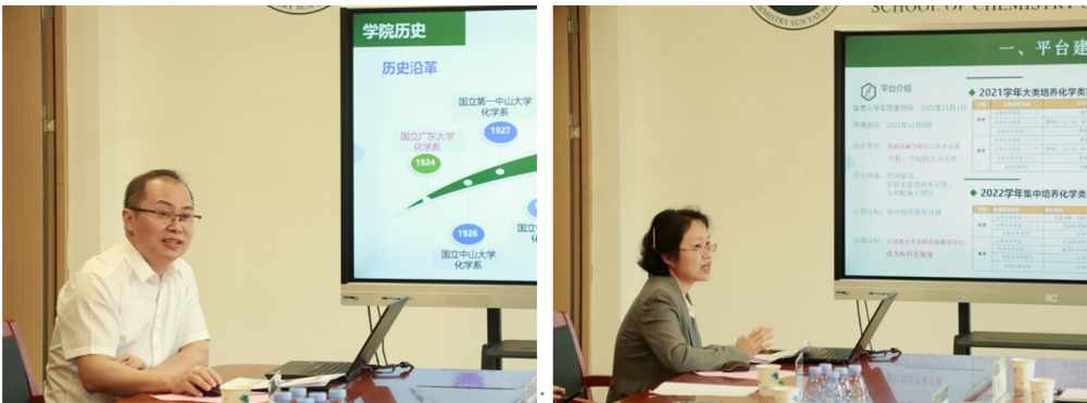 聘任仪式后,召开了教学指导委员会会议。实验中心副主任李厚金副教授做中心工作汇报,内容包括学院简介、中心概况、从实验室条件建设、实验教学建设与成效、人才培养、实验室安全、会议交流、培训学习、示范辐射、中心文化建设等多方面对2022年度实验中心工作进行了全面总结、并介绍了未来工作重点等。实验中心教学主管赖瑢老师做了“化学公共实验教学平台建设与管理”的报告,分别从“平台建设、平台管理体系、展望与规划“三方面对一年级本科学生实施集中培养的化学公共实验教学平台进行了介绍。