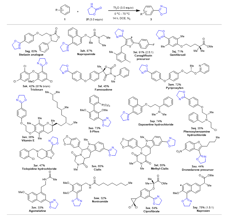 图4. 复杂芳香分子的亲电芳香恶唑啉化