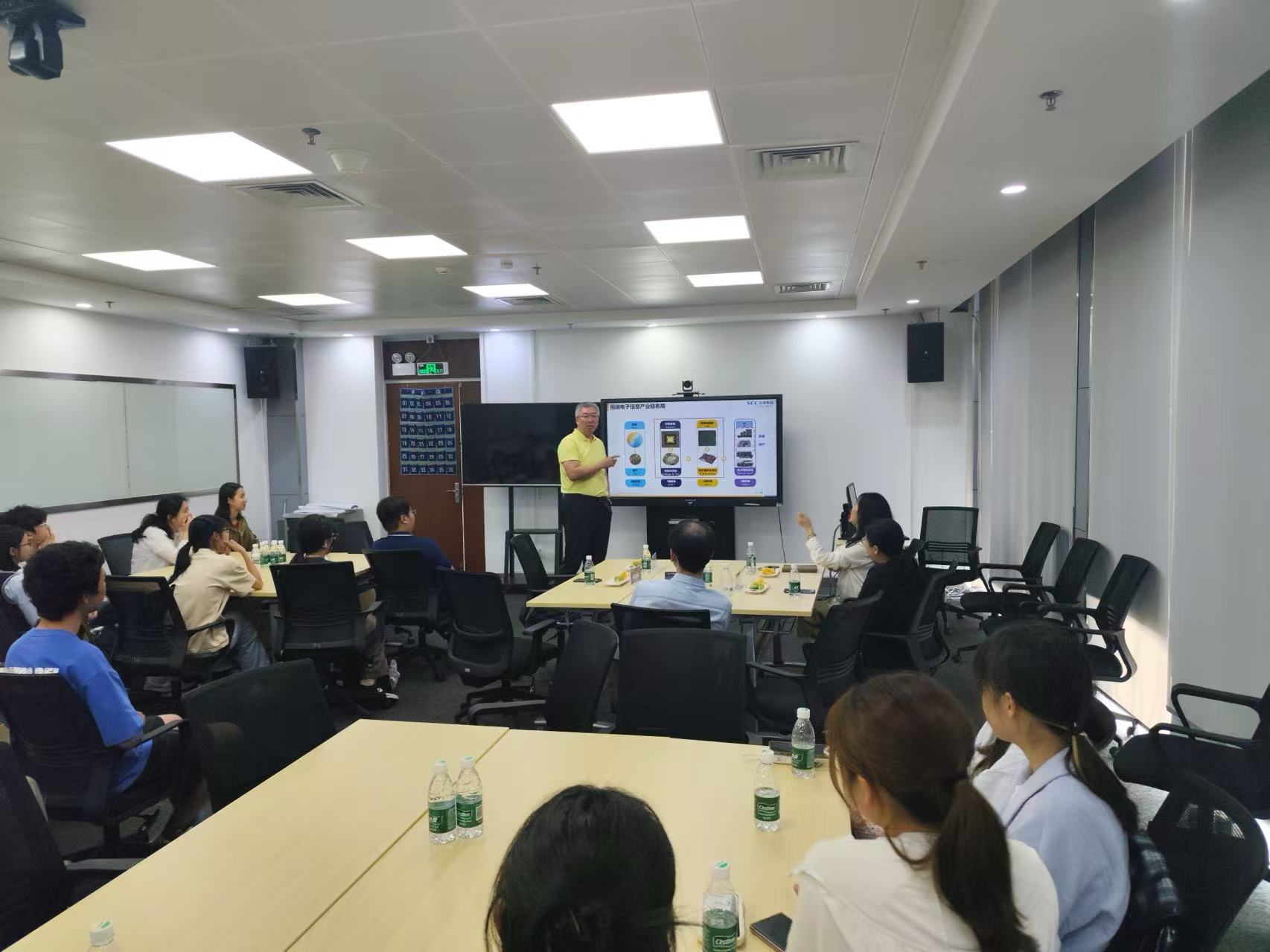 4月22日,朱庭顺、崔国峰老师带领师生前往深南电路股份有限公司。工作人员带领师生们参观了芯片的生产流程,并介绍了企业的电子信息产业链布局和晋升培养体系等。同学们了解到化学专业与电子信息行业的紧密关系,扩宽了对化学专业应用和就业方向的认识。