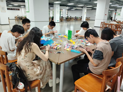 5月25日当天,我院和材料科学与工程学院、电子与信息工程学院 (微电子学院)、心理健康教育咨询中心在东校园生活区联合举办心理健康游园会。我院负责“蕉绿”投掷和叶脉书签DIY两个游戏:用沙包击倒写满焦虑的纸杯,让压力像“副产物”一样被抛弃;叶脉书签二次加工,让一抹春色藏于阅读之中。同时,我们还邀请同学们现场分享一月前领取的多肉的成长日记,希望同学们在照顾多肉的过程中,逐渐培养耐心与细致