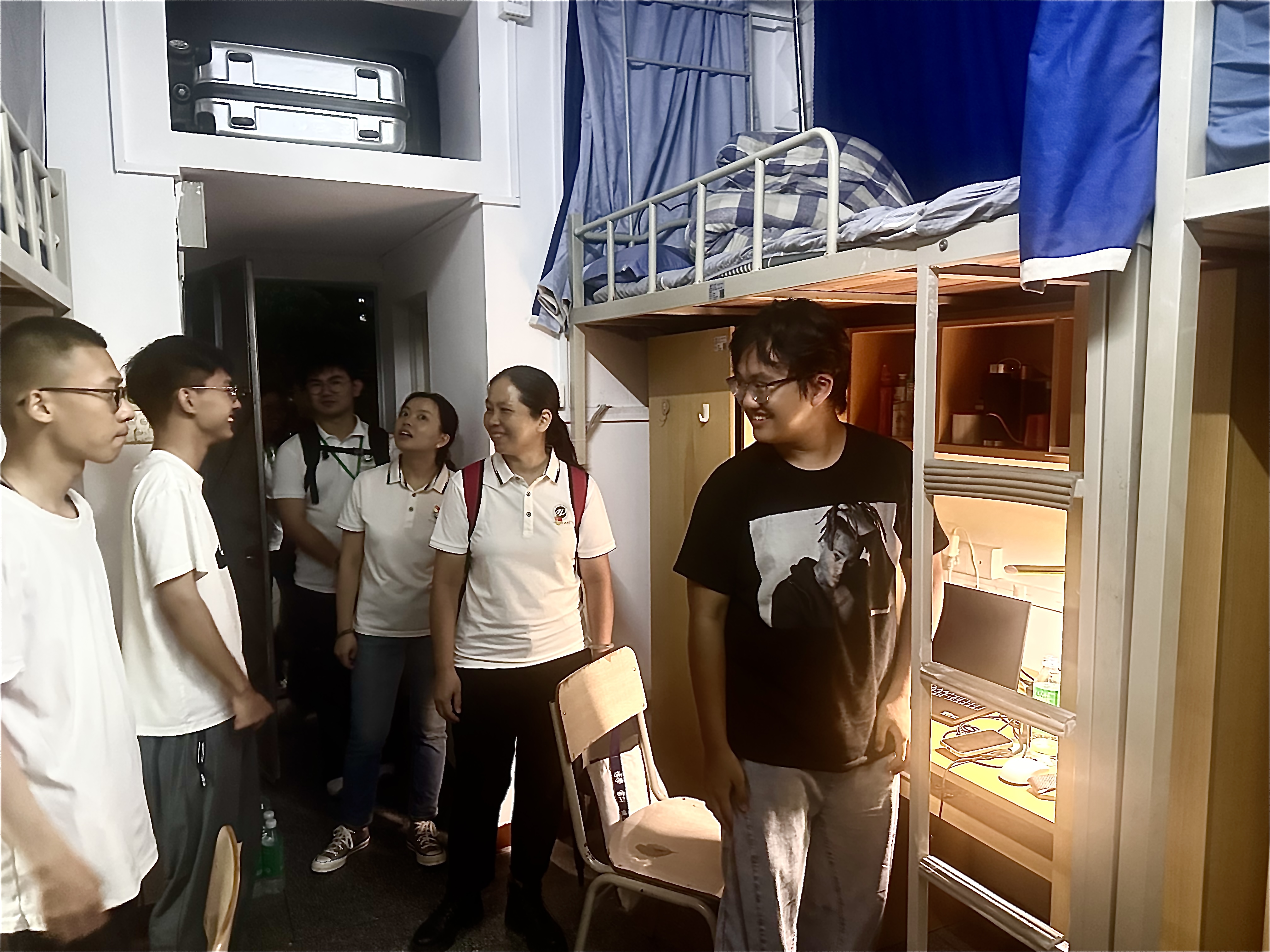 晚上,谭海燕副书记、辅导员吴祖瑶与新生学长团成员走访新生宿舍,了解新生入住和适应情况,与新生及家长进行交流,对其大学生活给予指导和建议。志愿者们则向每个宿舍发放《中国共产党章程》和永利集团3044noc登录入口方格纸,鼓励新生学习党的基本知识和创新理论,主动向党组织靠拢。