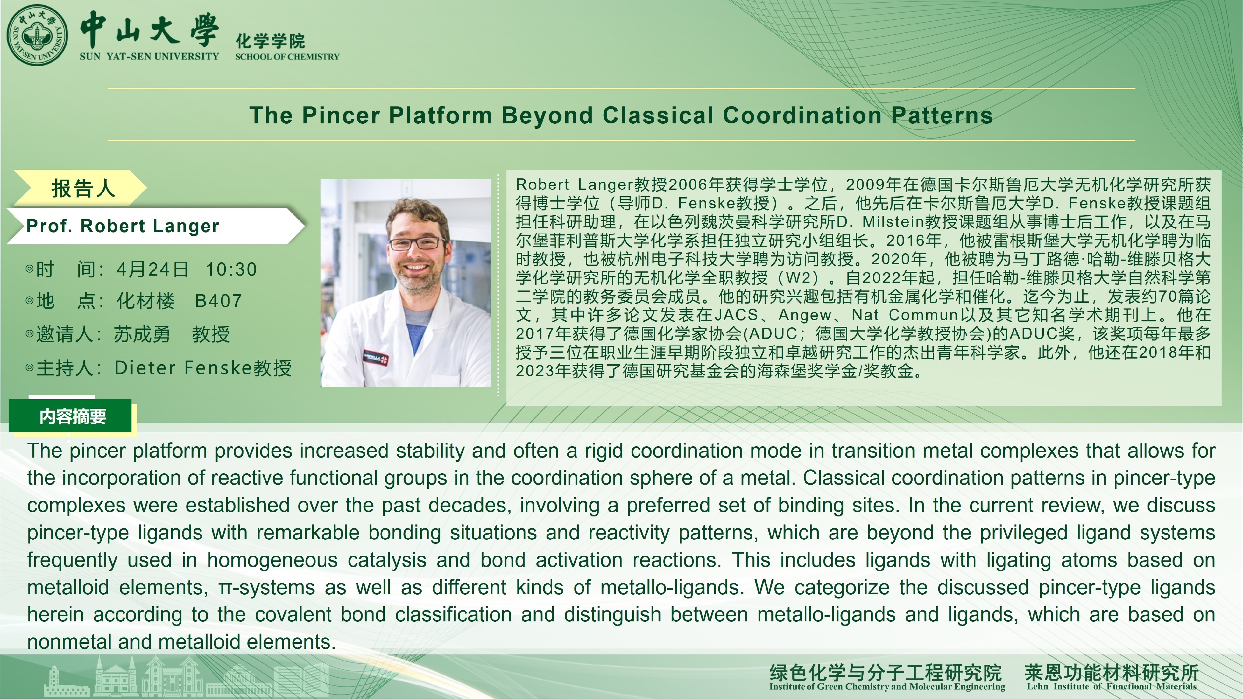 导航痕迹 首页 科学研究 学术报告 2025年04月24日讲座论坛:The Pincer Platform Beyond Classical Coordination Patterns 2025年04月24日讲座论坛:The Pincer Platform Beyond Classical Coordination Patterns 发布日期:2025-05-08