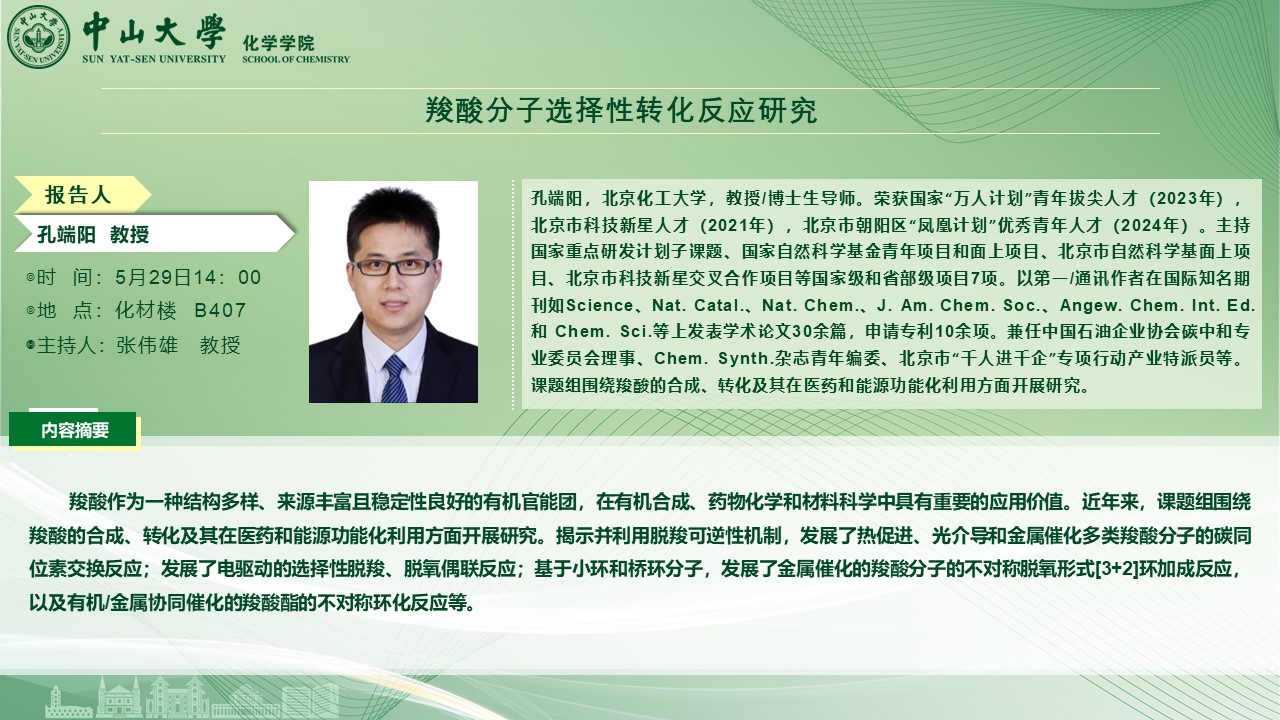 2025年5月29日讲座论坛:羧酸分子选择性转化反应研究