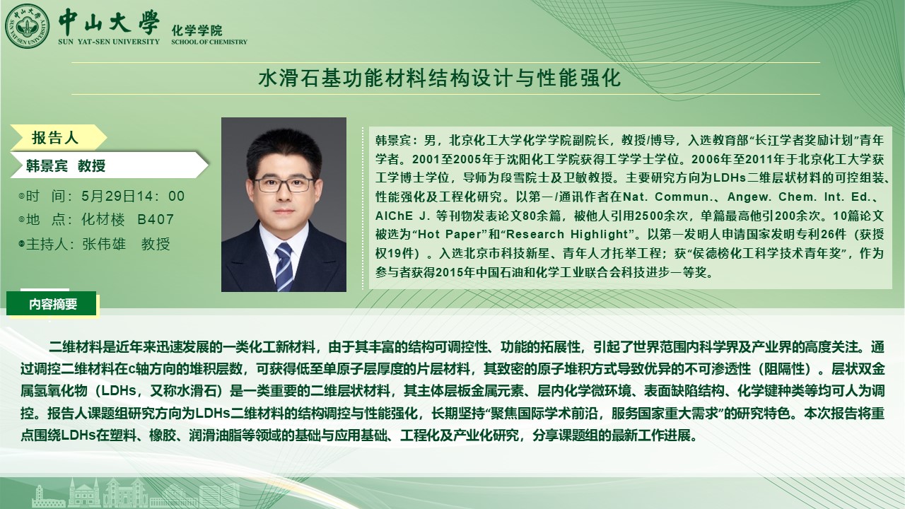 导航痕迹 首页 科学研究 学术报告 2025年5月29日讲座论坛:水滑石基功能材料结构设计与性能强化 2025年5月29日讲座论坛:水滑石基功能材料结构设计与性能强化 发布日期:2025-05-28