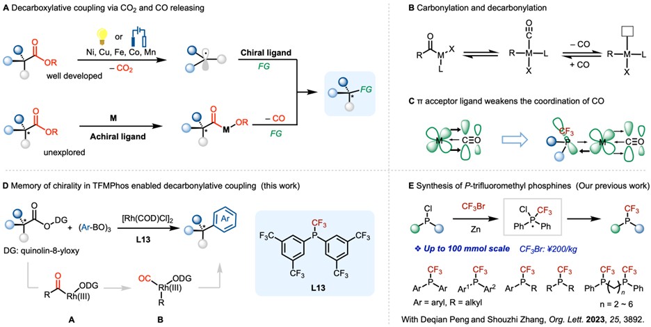Configuration Retention in P-Trifluoromethyl Phosphine Enabled Rh(I)-Catalyzed Decarbonylative Coupling of Carboxylates and Boroxines